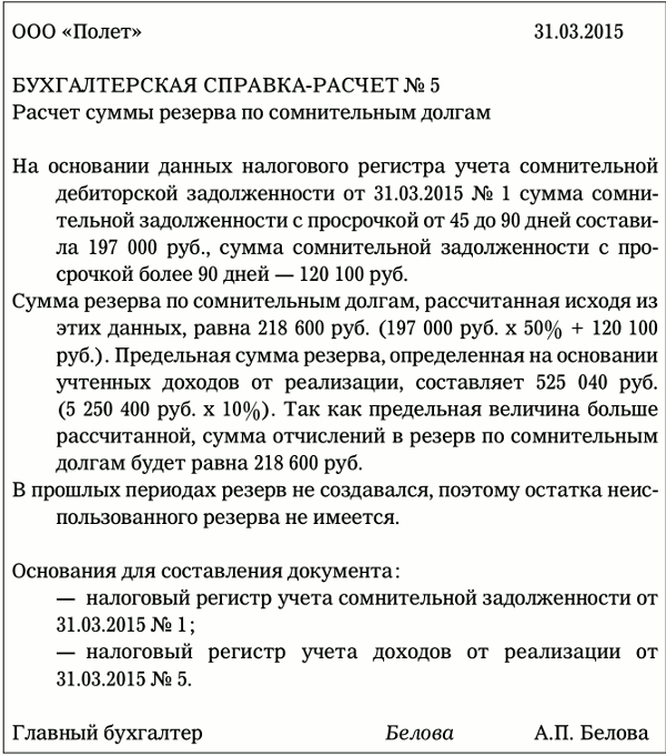 Образец приказа о создании резерва сомнительных долгов